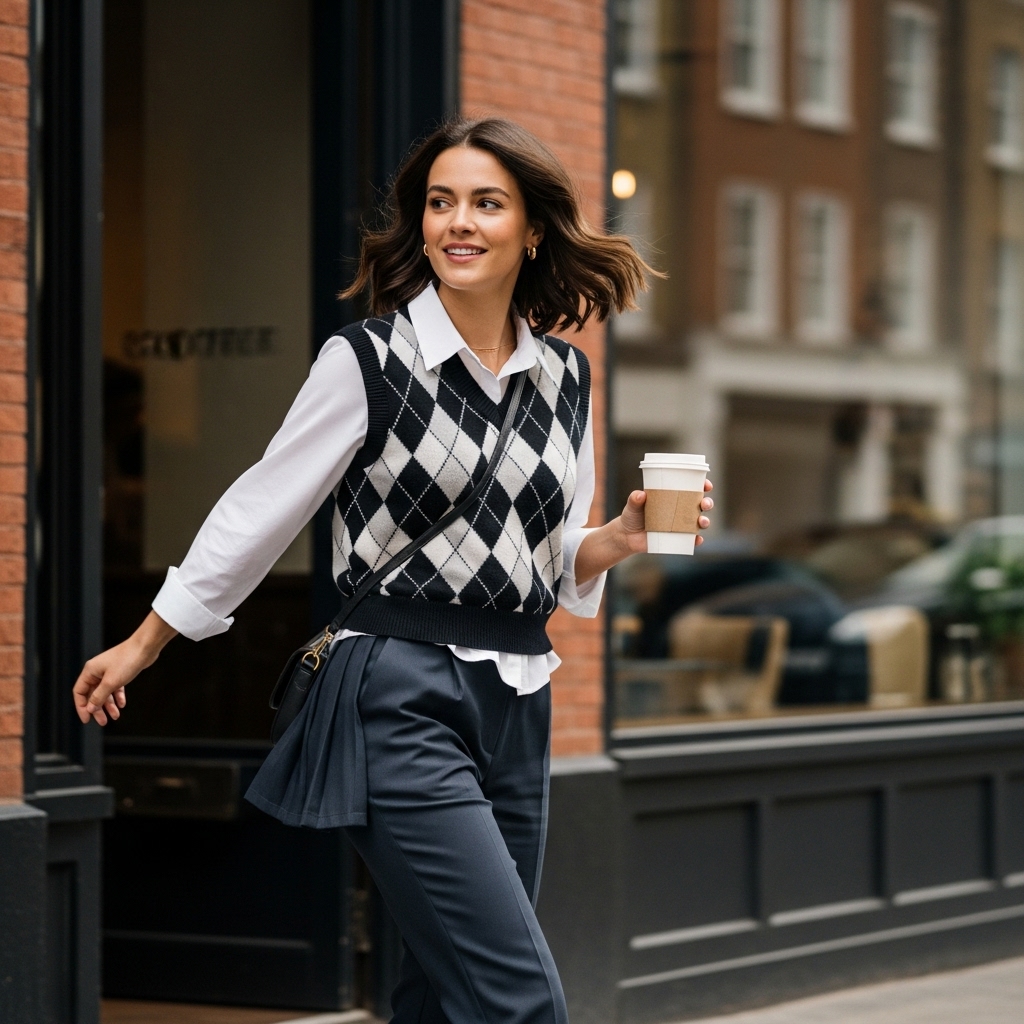 Sweater vests are having their moment again. Layer one over a crisp white shirt or turtleneck for a retro-inspired yet modern look. Pair with a mini skirt or tailored trousers to keep it fresh. Play with textures — cable knit or argyle patterns add interest. Whether you prefer oversized or fitted styles, sweater vests are an easy layering piece that keeps your fall outfits creative and cozy.