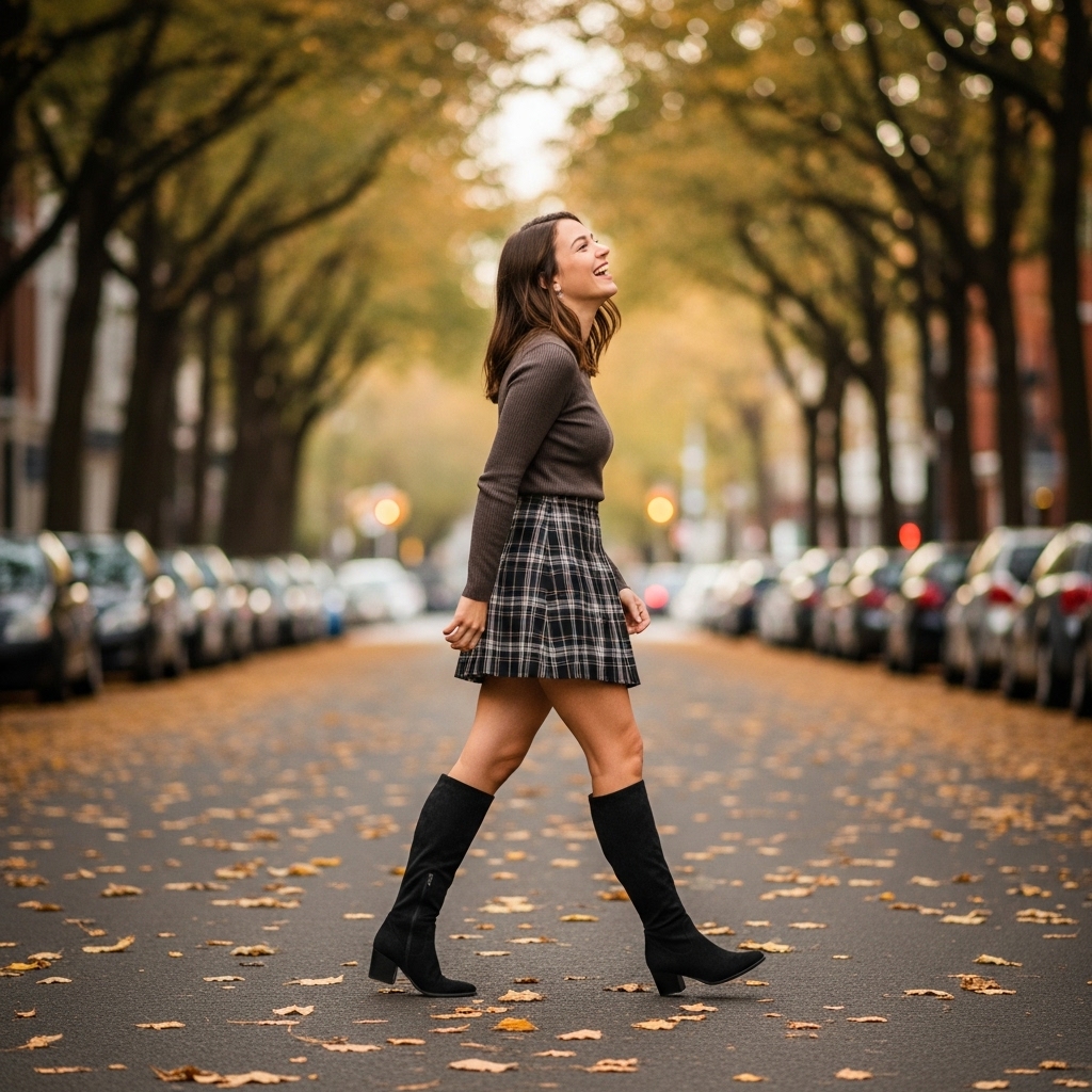 Plaid mini skirts are making a major comeback this fall, offering a playful nod to classic preppy style. Pair one with a fitted turtleneck or cropped sweater for balance. Knee-high boots complete the look, while layered jewelry adds charm. Opt for autumn tones like burgundy, brown, or mustard. Whether you’re heading to a cozy café or a night out, plaid minis bring youthful, stylish energy to any fall outfit.