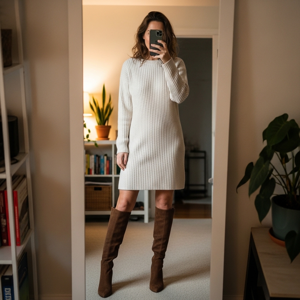 Turtleneck dresses are the ultimate fall staple — sleek, comfortable, and easy to style. Choose ribbed or knit fabrics that flatter your figure while keeping you warm. Pair with knee-high boots or ankle booties for a timeless silhouette. Add a belt for extra shape and a long coat for layering. This outfit transitions effortlessly from workdays to dinner dates, offering understated elegance and seasonal versatility.