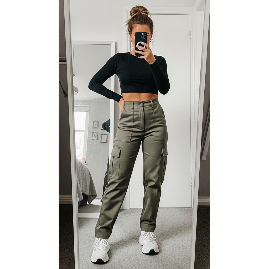 Cargo pants are back, merging practicality with cool streetwear style. Modern designs feature a tailored fit, flattering high waist, and minimal pockets. Pair them with a fitted bodysuit or cropped knit top to balance proportions. Add chunky sneakers or combat boots for an urban finish. Whether you’re running errands or hitting the city, cargo pants are your go-to for functional fashion that’s edgy yet refined this fall.