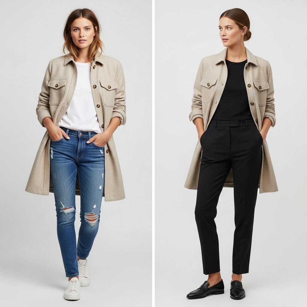 - Add boots and structured bags for a polished finish.