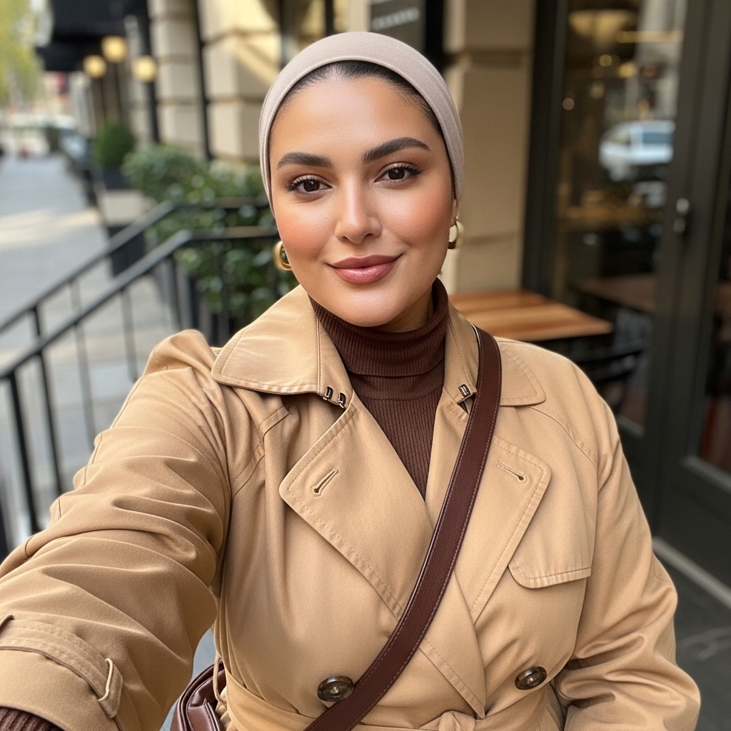 A trench coat is a timeless hijabi essential for fall. Layer it over a turtleneck and straight-cut pants for a sleek look that works day or night. Neutral shades like camel, khaki, and cream elevate your outfit effortlessly. Finish with a printed hijab and leather crossbody bag for that soft, sophisticated charm hijabis love during the season.