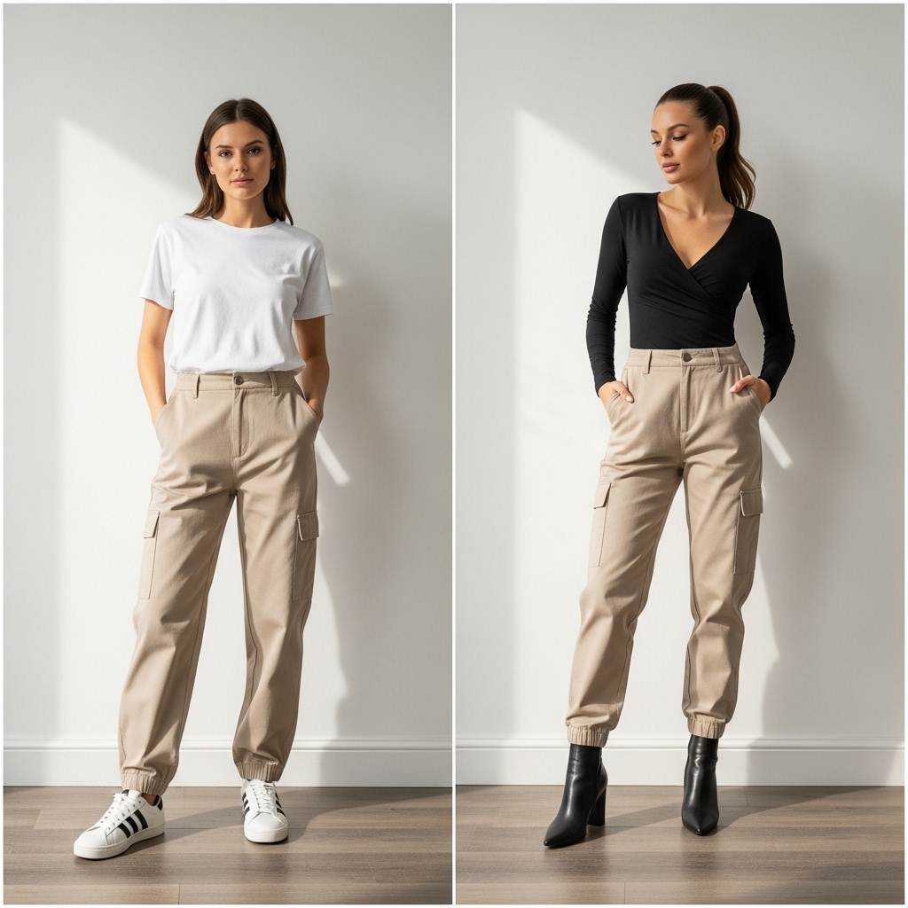 Cargo pants are trending again this season! Style them with a fitted top or crop tee to create balance. Add combat boots or chunky sneakers for an edgy vibe. Go for earthy shades like khaki, olive, or sand. This outfit screams cool-girl fall fashion while keeping comfort front and center.