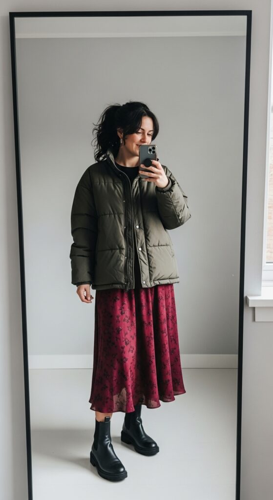 19. Puffer Jacket with Midi Skirt