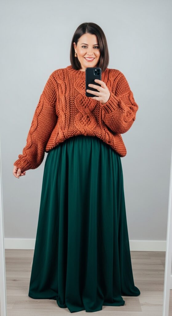 1. Oversized Knit Sweater with Maxi Skirt