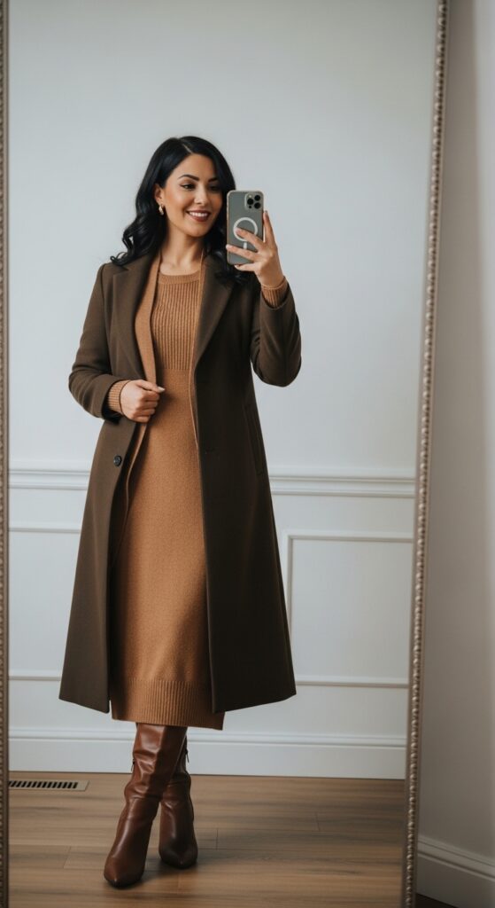 6. Midi Sweater Dress with Long Coat