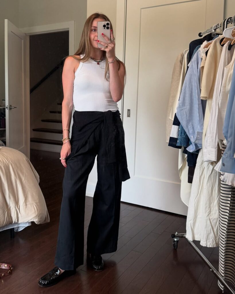 10. Ribbed Ivory Tank with Tailored Midnight Trousers
