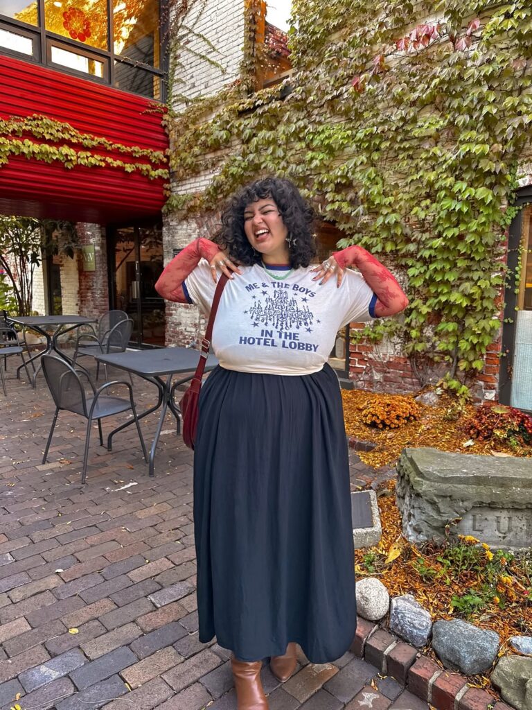 15. Graphic Tee with Midnight Maxi Skirt and Autumn Boots