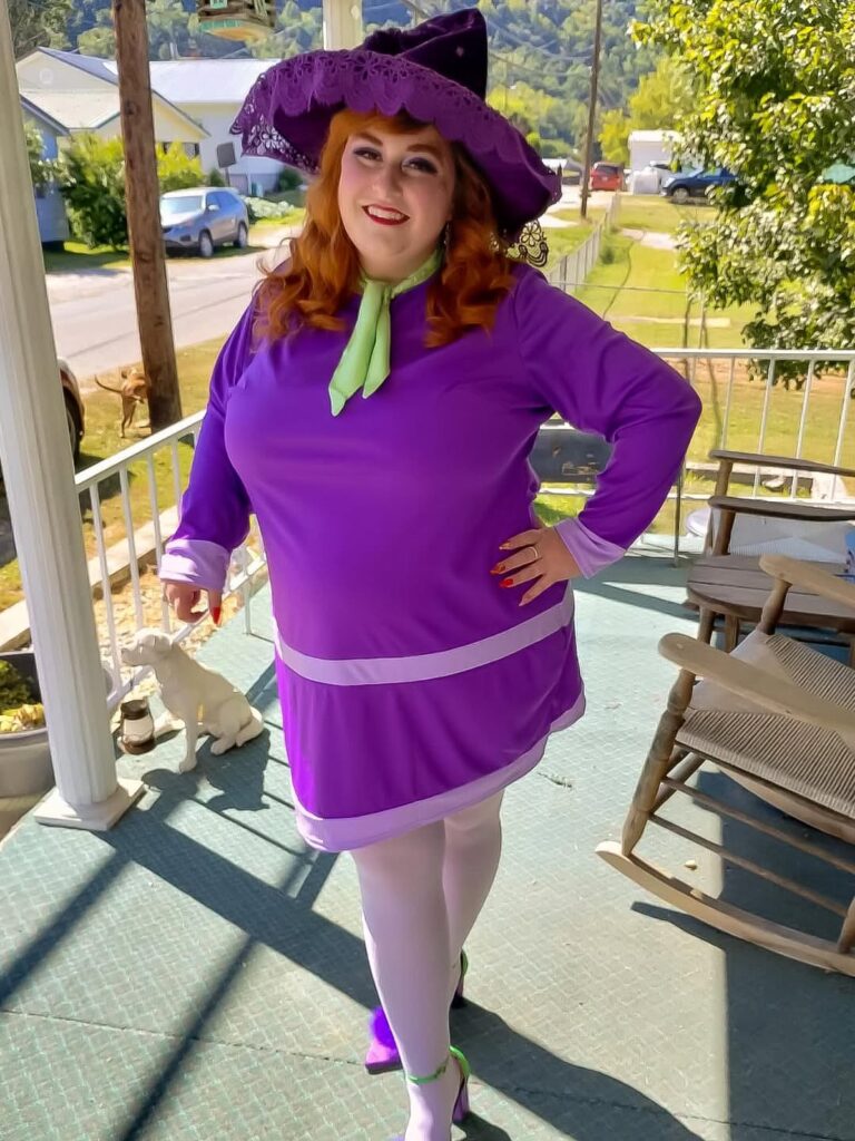 This enchanting look pairs retro mod style with witchy elegance, creating a cosplay that’s both playful and mysterious. The violet dress often includes structured seams, gentle A-line flow, and a comfortable fit that flatters curves while allowing movement during conventions or themed parties. Paired with a lace-brimmed witch hat, it creates instant character depth without feeling heavy or overdone. The combination of mod fashion and classic magical elements makes this outfit perfect for anyone wanting a blend of charm, whimsy, and wearable comfort.