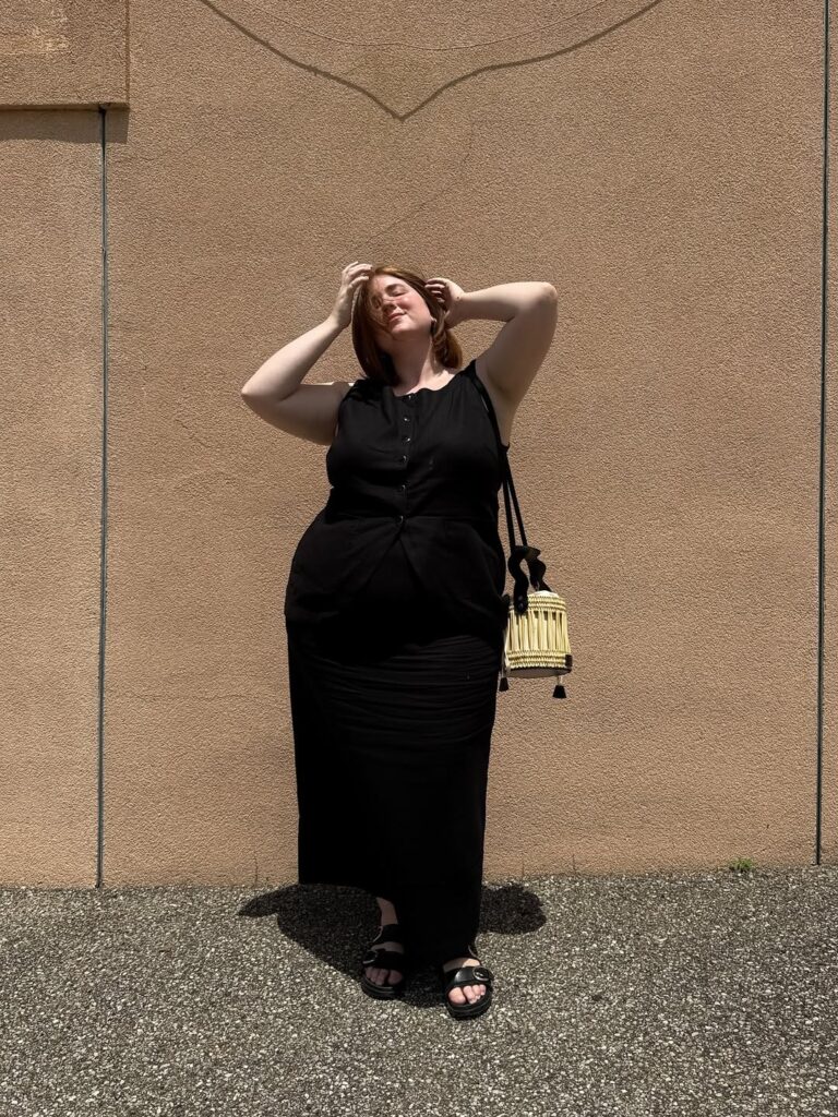 8. Black Buttoned Tank Set with Textured Maxi Skirt