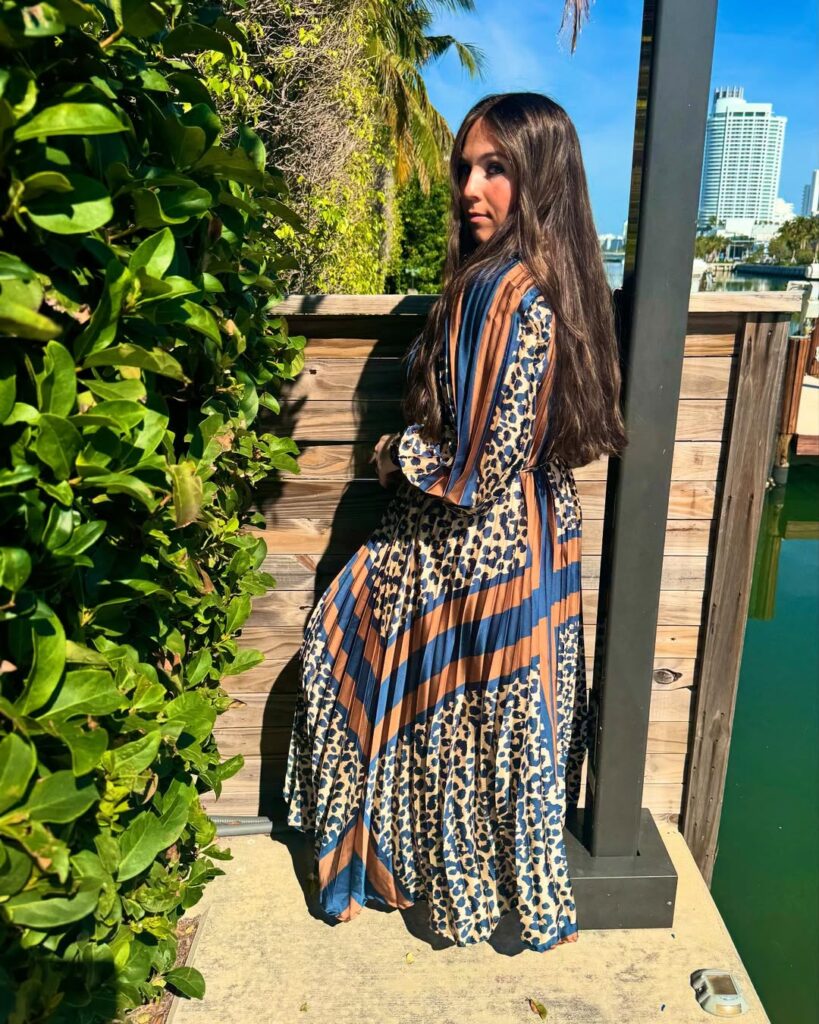 5. Navy-Caramel Pleated Maxi with Cheetah Panels