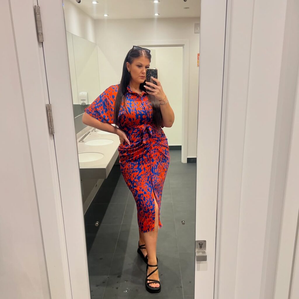Bold, modern, and art-inspired, this crimson-cobalt midi stands out with its abstract print and thoughtfully ruched waist. The strategic gathering cinches comfortably, enhancing curves without restricting movement. Its midi length offers versatility for both classic and contemporary prom themes. The vibrant colors bring confidence and personality, making it a perfect choice for someone who loves fashion-forward styles. Despite its boldness, the soft fabric keeps the outfit comfortable, allowing you to dance, walk, and pose effortlessly while maintaining a refined silhouette.