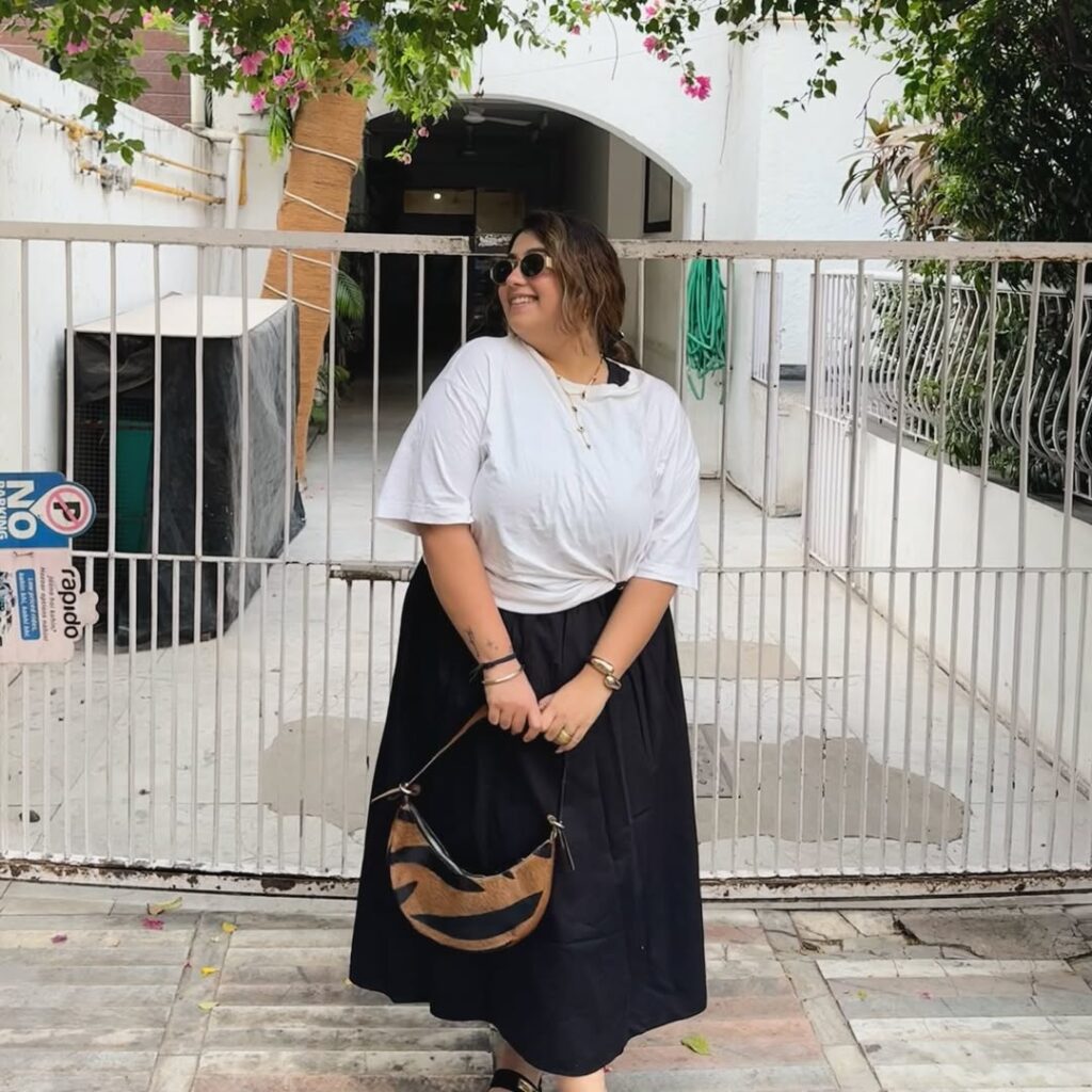 14. Monochrome Midi Skirt with Relaxed Knot Tee