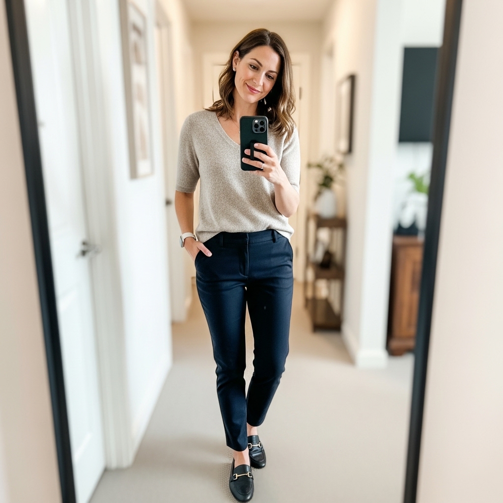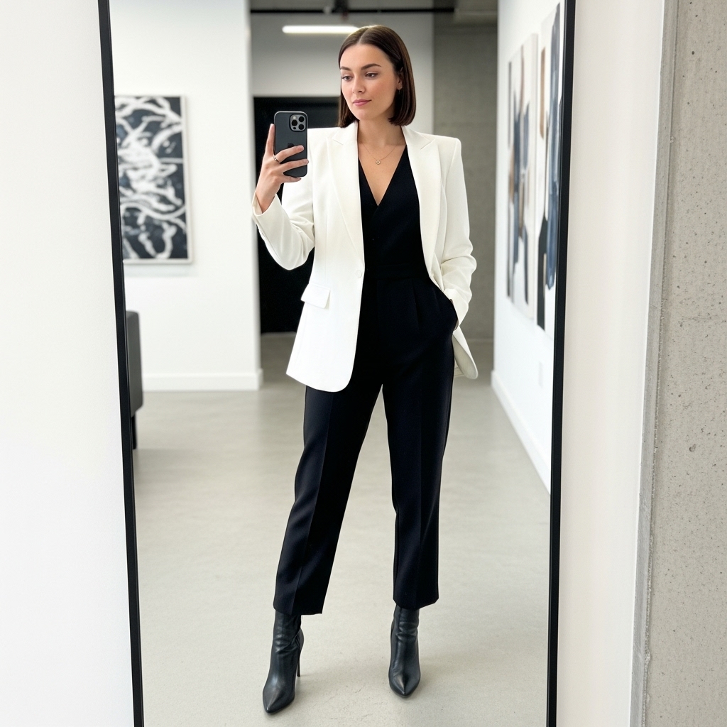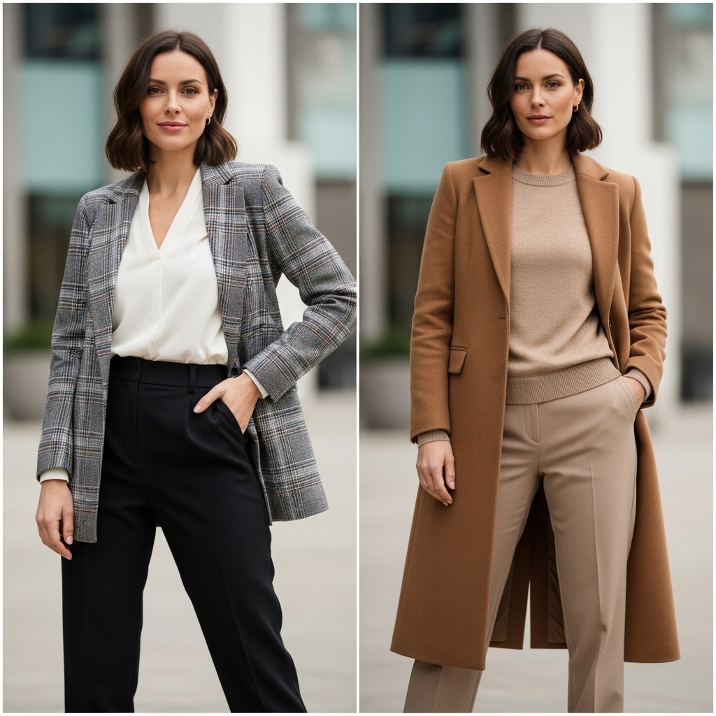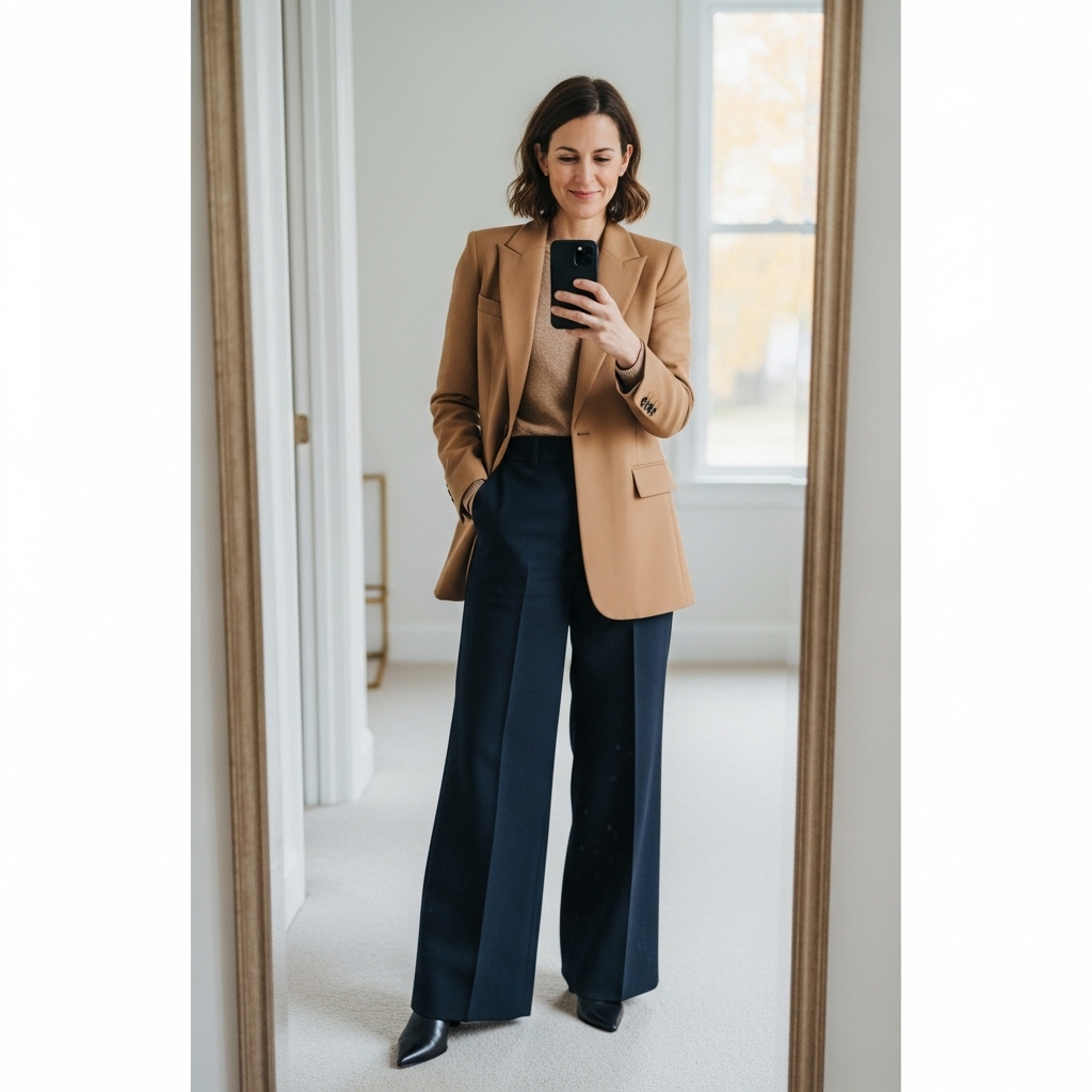 Nothing says professional chic like a tailored blazer paired with wide-leg trousers. This combo elongates your frame and adds instant sophistication. Stick to neutral shades such as grey, navy, or black, and layer with a lightweight knit underneath. Finish the outfit with pointed-toe loafers or ankle boots for a polished vibe. This look works perfectly for important meetings or client-facing roles during fall.