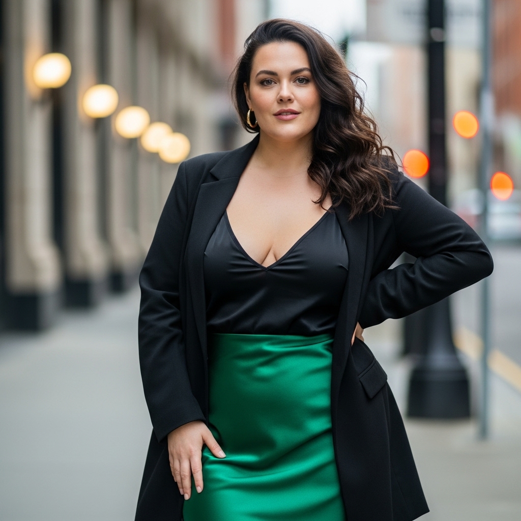 A satin or slip-style midi skirt instantly elevates workwear when balanced with a longline blazer. Keep the colors muted—think champagne, navy, or deep olive. Add sleek ankle boots and delicate jewelry. This outfit gives a chic, modern edge to traditional office wear. It’s great for professionals in creative industries who want to mix fashion-forward trends with workplace-appropriate elegance during the fall.