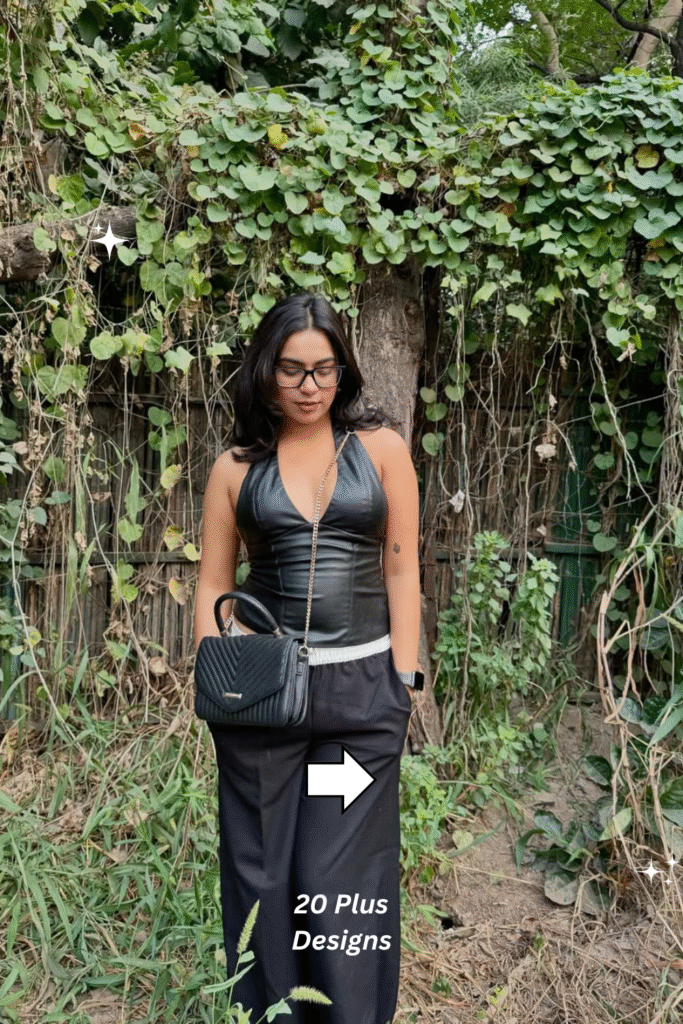 A leather halter top combined with relaxed black trousers balances bold style and ease. The top exudes modern concert glamour, while the trousers provide freedom of movement and comfort. Suitable for evening concerts or casual VIP meetups, the outfit shows that edgy, sleek fashion can coexist with practicality and relaxed sophistication.