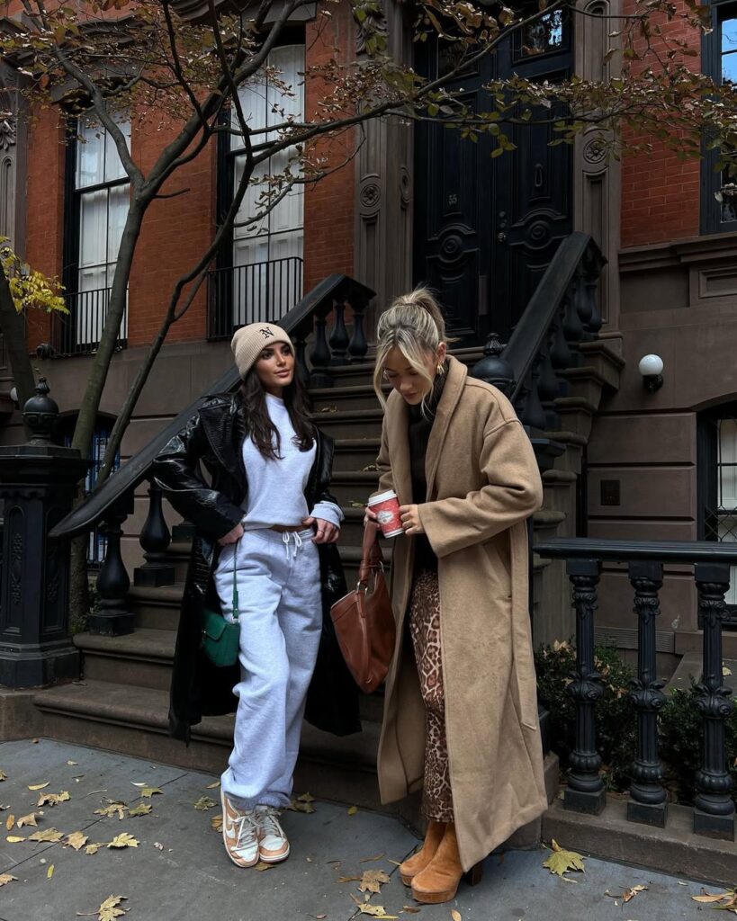 A black patent trench instantly turns a simple look into a bold fashion moment. Layered over heather grey loungewear, the outfit strikes a compelling balance between luxury and comfort. The glossy trench adds a sleek, urban edge, while the lounge set keeps things relaxed and wearable. Ideal for airport travel, city strolls, or late-night plans, this outfit proves that streetwear can be effortlessly chic without compromising on comfort or practicality.
