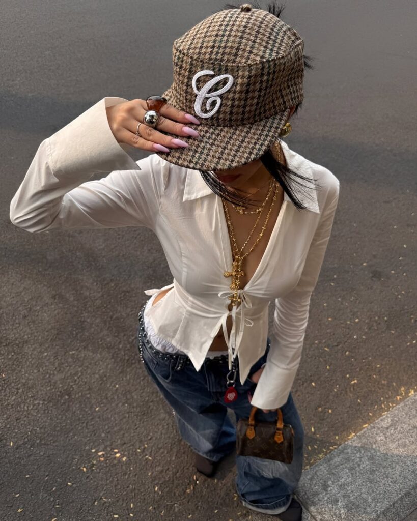 A tailored wrap blouse instantly elevates any look, and pairing it with vintage denim brings a casual, timeworn charm that feels authentically streetwear. The wrap design adds feminine structure, while the denim adds character and ease. This outfit is perfect for lunch dates or creative office days. Its blend of sophistication and nostalgia creates a fresh, balanced vibe that works effortlessly from day to night.
