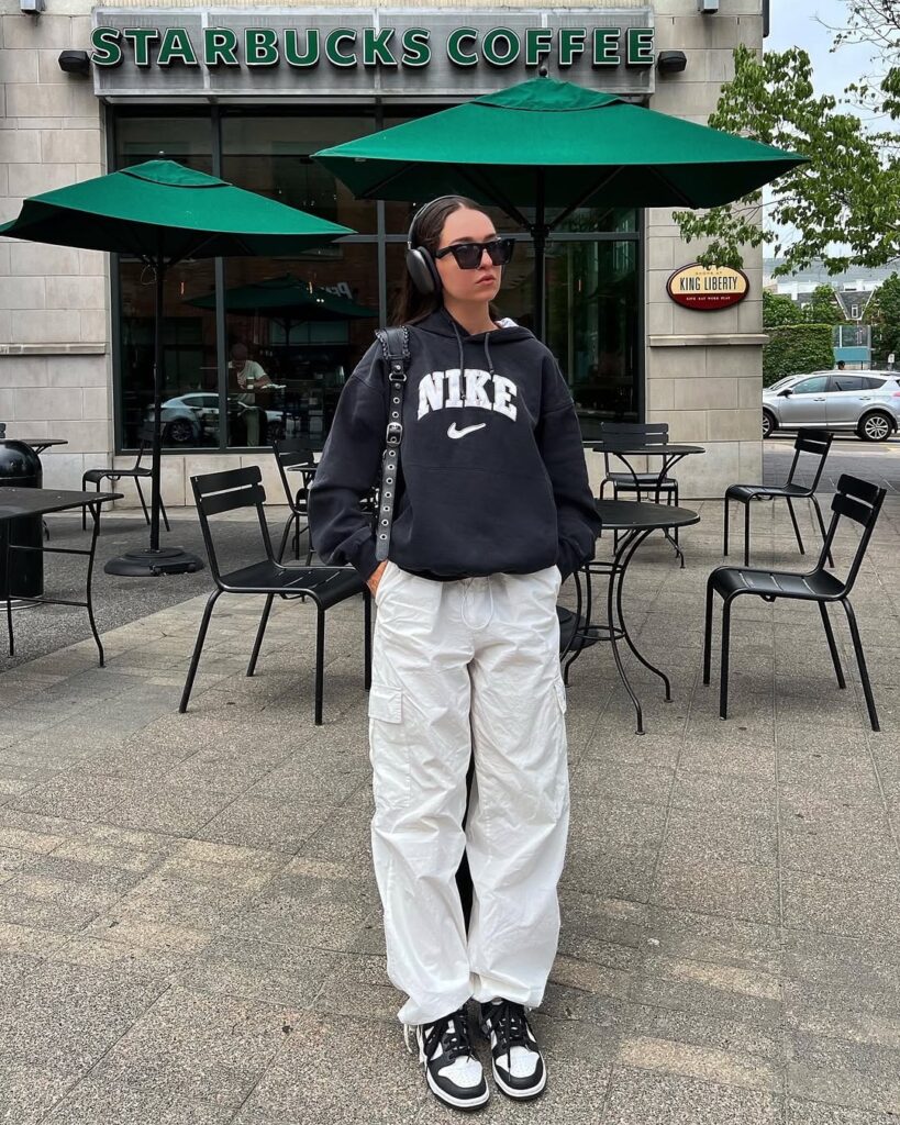 A vintage graphic hoodie brings nostalgia and personality, while crisp cargo trousers add structure and utility. This outfit works flawlessly for city walks, relaxed gatherings, or travel days. It balances the cozy feel of a beloved hoodie with the clean lines of modern cargo pants, creating a look that’s both laid-back and stylish. The combination is effortlessly cool and perfect for everyday streetwear lovers.
