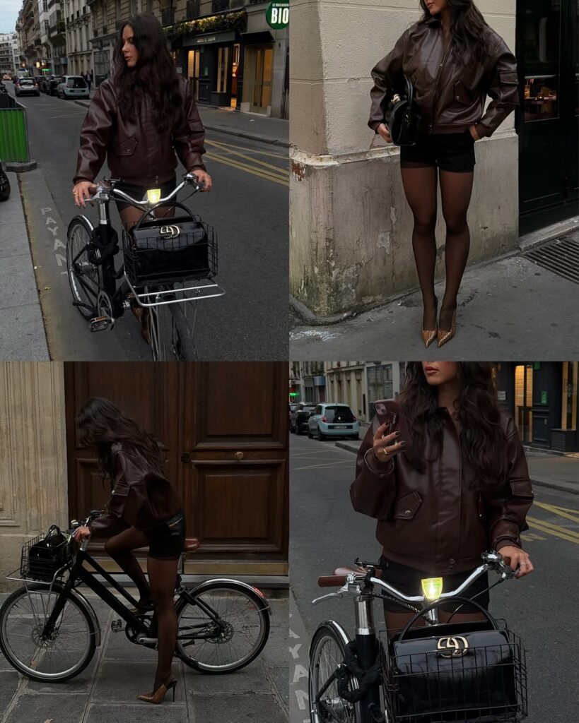 A chocolate leather bomber sets a bold tone, bringing rich texture and attitude to the look. Paired with noir micro shorts, this outfit strikes a daring yet stylish balance. Ideal for warmer evenings or concert nights, the contrast between structured leather and minimal bottoms creates a confident, high-fashion moment. This pairing embodies streetwear’s fearless personality while staying easy to wear.
