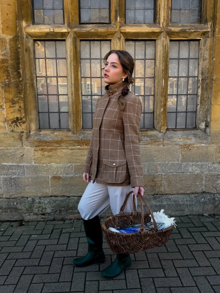 A country tweed riding jacket paired with cream jodhpurs creates a refined, equestrian-inspired vintage look. Tweed brings timeless warmth and structure, while jodhpurs add comfort and heritage authenticity. This outfit is ideal for countryside escapes, chilly autumn days, or refined casual outings. It blends tradition with modern wearability, offering freedom of movement without compromising style. The muted palette keeps the ensemble elegant, grounded, and beautifully classic.
