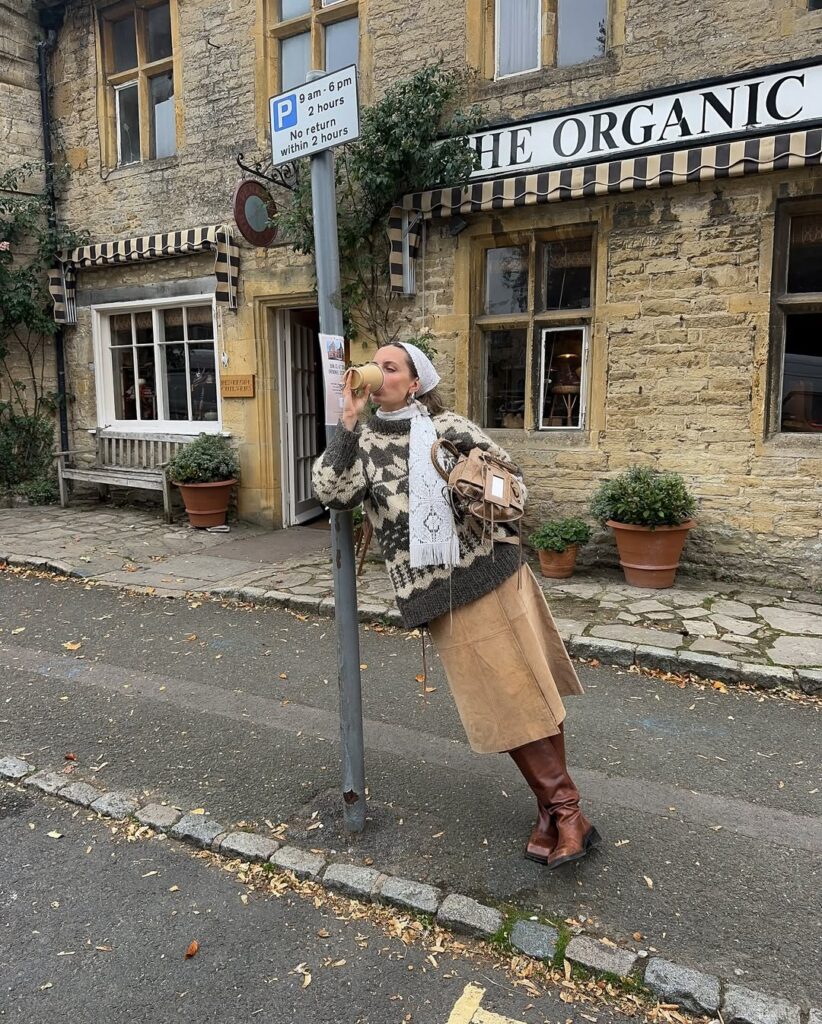 The cozy charm of a Fair Isle knit paired with a suede midi skirt and chestnut boots creates the perfect rustic vintage ensemble. This combination evokes winter cabin vibes while maintaining a polished, intentional feel. The textures—wool, suede, and leather—come together to create warmth without bulk. Ideal for winter markets, holiday gatherings, or countryside weekends, this look balances nostalgia with comfort, making it both practical and beautifully styled.