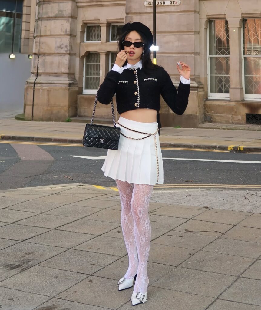 This outfit channels classic Parisian charm with a modern twist. The tweed crop jacket brings structure and couture influence, while the pleated mini skirt adds youthful movement. Ideal for café lunches, shopping days, or mild-weather travel, it strikes a balance between polished and playful. Tweed adds richness and texture, ensuring the look feels elevated, while the shorter silhouette keeps it fresh and comfortable for everyday wear. It’s a chic, unmistakably vintage-inspired outfit.
