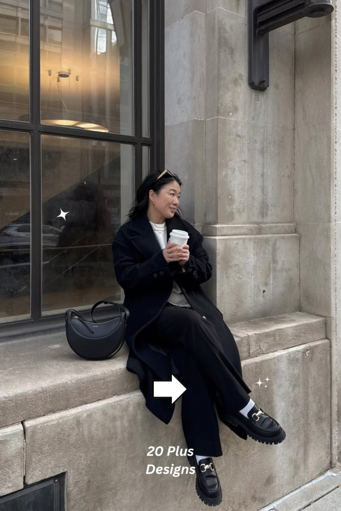 The navy wool coat is a staple for refined winter dressing, complemented by classic loafers and a structured satchel. Its deep hue provides versatility, while the coat’s tailored design ensures a flattering silhouette. Perfect for office settings, luncheons, or urban exploration, the ensemble balances professionalism with cozy warmth. Loafers add understated elegance, and the satchel introduces a polished finishing touch. This look demonstrates that winter outfits can be both comfortable and stylish, ideal for those who prefer timeless pieces with subtle modern updates.