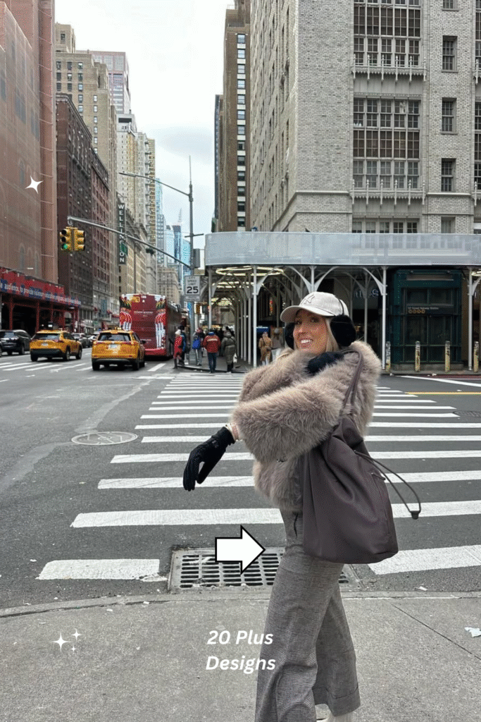 The taupe faux fur jacket is soft, inviting, and perfectly paired with structured plaid trousers. This outfit combines tactile warmth with tailored lines, suitable for winter meetings, casual brunches, or stylish errands. The neutral taupe hue allows versatility in pairing, while the plaid trousers bring a classic, timeless pattern into the ensemble. By blending relaxed outerwear with more polished pieces, this outfit strikes an ideal balance between cozy comfort and contemporary winter elegance.