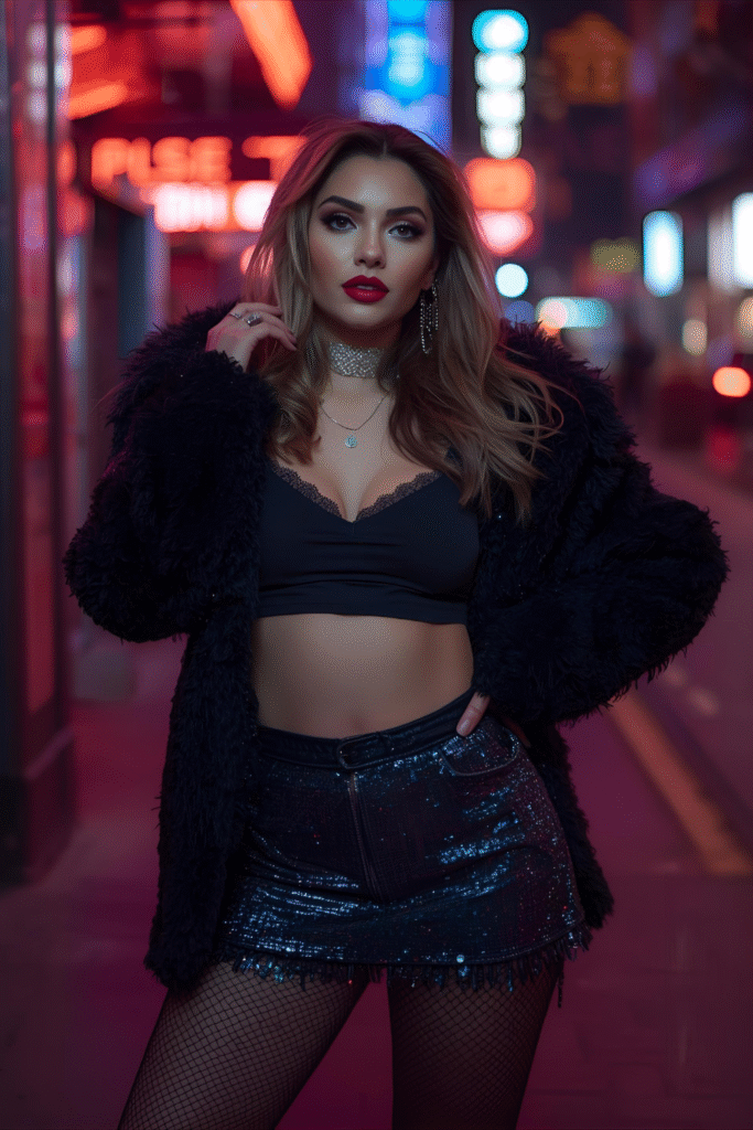 Combine urban cool with club elegance by rocking a street-chic outfit. Think effortless yet trendy — mixing casual and glam in the right way. It’s the perfect aesthetic for winter nights when you want to look stylish without overdoing it. This look is ideal for dancing, photos, and after-party plans, keeping your outfit fashionable and functional all night long.
