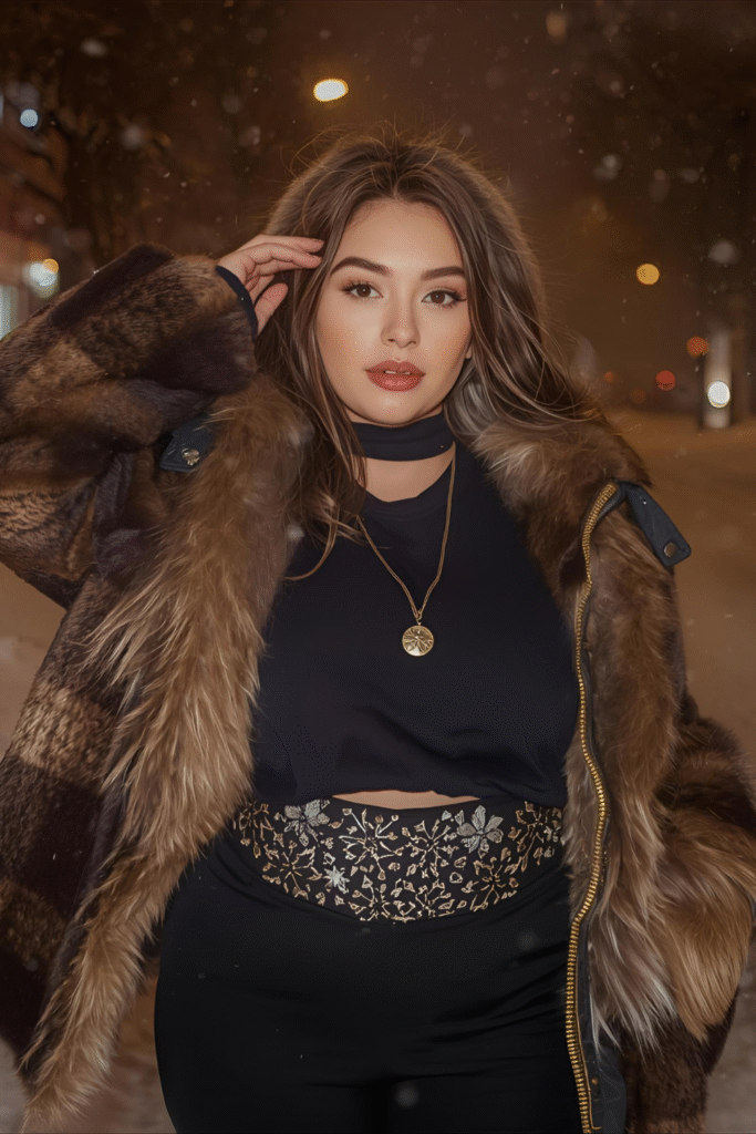 Elevate your club outfit with a touch of luxury using faux fur. This winter staple adds sophistication, texture, and warmth — all while keeping your look stylish. A faux fur element instantly upgrades your clubbing aesthetic, making you look like a trend icon. It’s perfect for transitioning from outdoor chill to indoor thrills without missing a beat in your party-ready style.