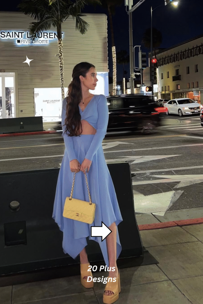 14. Periwinkle Cutout Maxi Dress with Asymmetrical Hem and Platform Heels