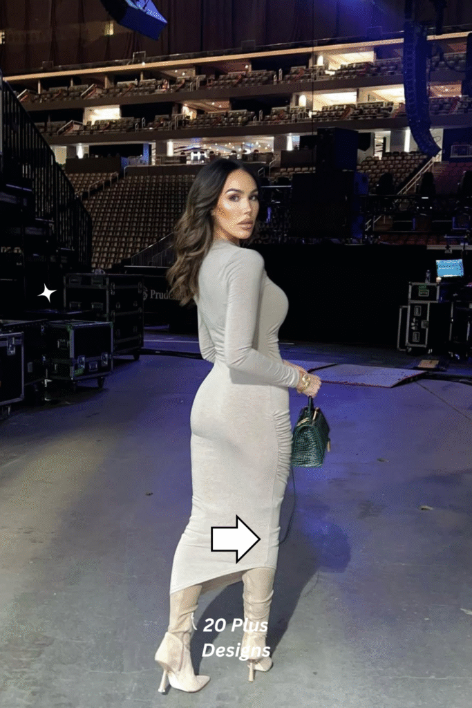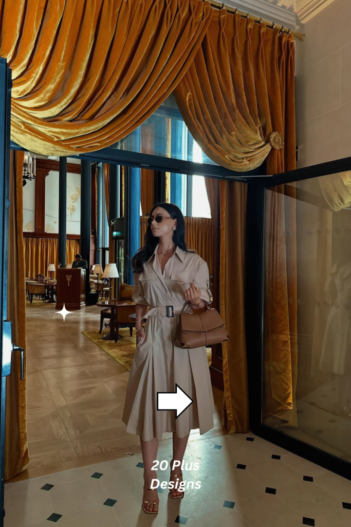Elegant and sleek, this outfit captures minimalist beauty at its best. The side slit adds allure, while the muted taupe shade keeps it grounded. It’s the kind of outfit that makes an impression without saying too much.