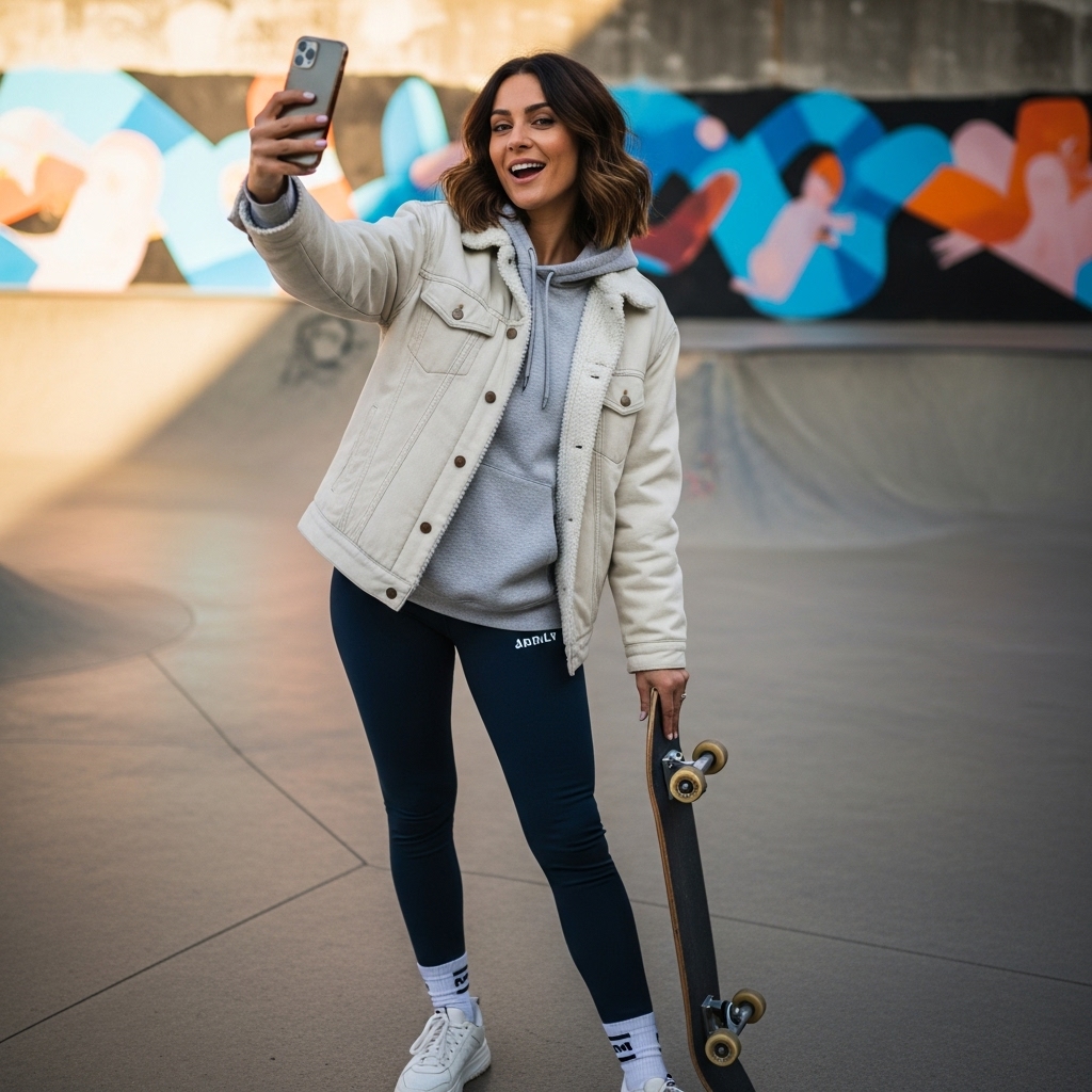 The sherpa-lined denim jacket is a winter classic that pairs effortlessly with hoodies, leggings, or jeans. It gives off a laid-back, cozy vibe. Add sneakers or ankle boots for an easy-going outfit. Perfect for transitional winter days, this outfit proves you can be stylishly relaxed.