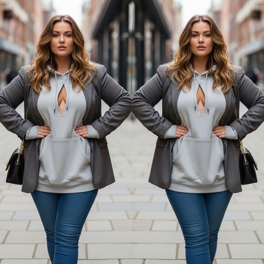 Mix streetwear and sophistication by layering a structured blazer over a casual hoodie. Pair with jeans or tailored trousers and sneakers. This look is trendy, youthful, and perfect for Pinterest-style winter outfit boards. It’s an effortlessly cool combo that balances comfort and structure.
