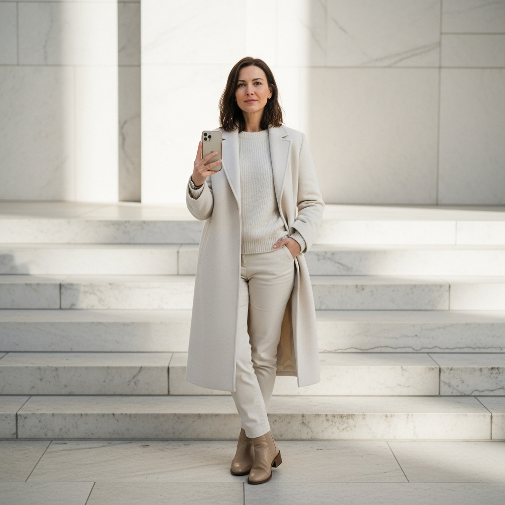 Neutral tones never fail in winter fashion. Combine beige, taupe, and gray layers for a soft, elegant aesthetic. A cream sweater under a camel coat paired with light-wash jeans looks effortlessly put-together. Add subtle accessories and nude boots to complete the timeless palette. This outfit screams sophistication with minimal effort.