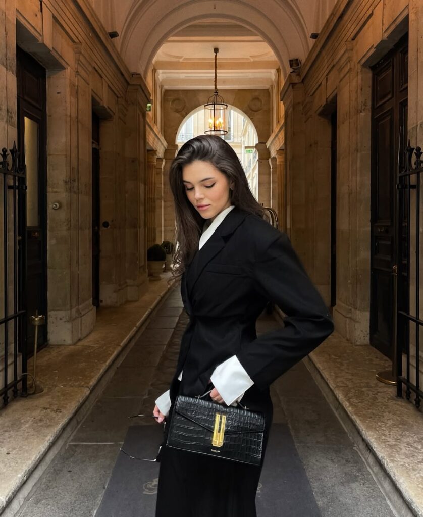 A sculpted black tailored suit is the epitome of workplace power dressing, and contrast cuff detailing adds a unique element that elevates the classic silhouette. This outfit is perfect for high-impact moments — presentations, meetings, or days when you want to command presence effortlessly. The structured design allows for comfortable all-day wear while maintaining sharp lines and a clean profile. It’s a timeless investment look that delivers sophistication with a subtle twist.