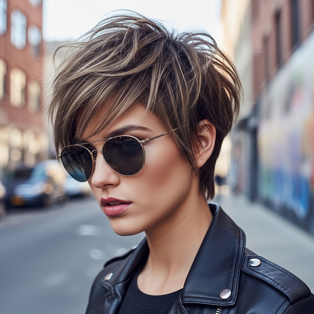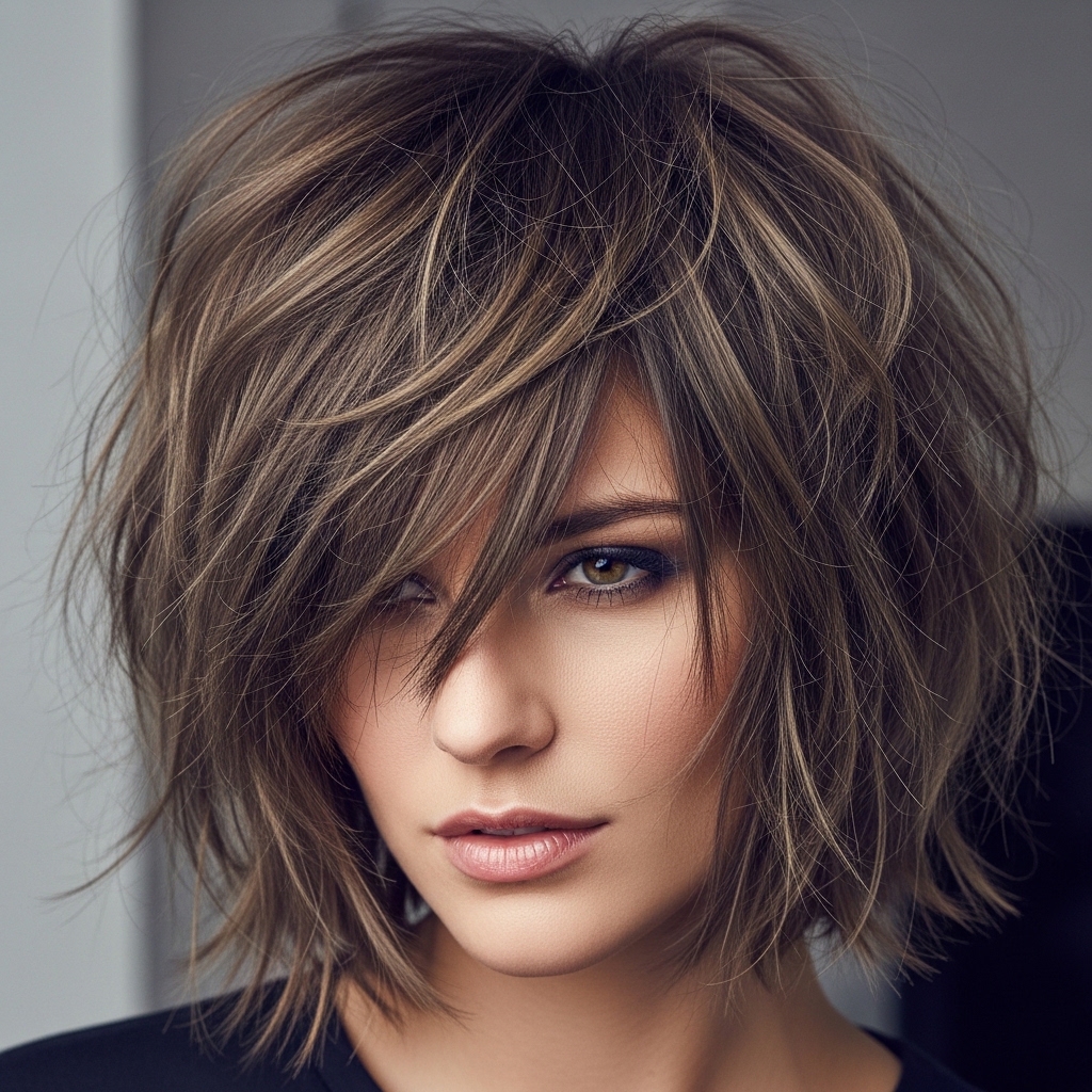 Defined by uneven layers and sharp texture, this bixie leans into a more edgy, street-style aesthetic. The choppy ends create dimension and movement, making the haircut appear bold yet wearable. It is ideal for creative environments, city lifestyles, and fashion-forward individuals looking to stand out.