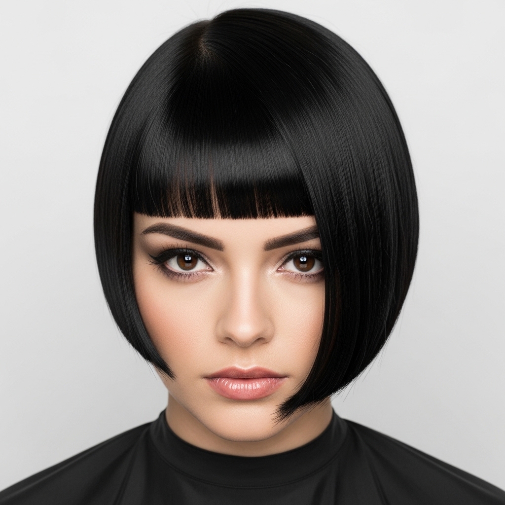 This refined version of the bixie features clean lines and a smooth, glossy surface that reflects light beautifully. The shape is carefully sculpted around the head, with precise layering that enhances facial symmetry. It works best in professional settings or evening events where a polished appearance is desired.