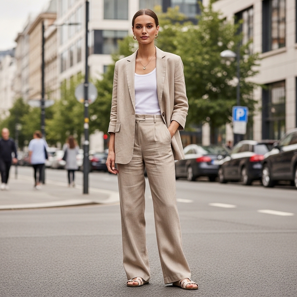 A linen co-ord set in soft neutral tones offers a polished yet breathable outfit option. Typically consisting of a relaxed blazer and wide-leg trousers or matching shorts, this look feels structured without being restrictive. It is ideal for brunch dates, casual work settings, or city outings. The lightweight fabric keeps you cool, while the tailored silhouette ensures you look put together. The balance comes from its versatility, allowing pieces to be styled separately or worn together for a cohesive, effortless ensemble.