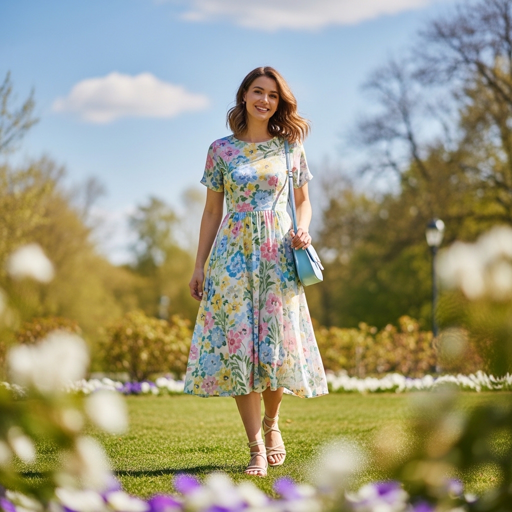 A floral midi dress captures the essence of spring with its soft movement and romantic prints. Featuring lightweight fabrics like chiffon or cotton, it flows gently with every step. Perfect for garden parties, daytime events, or weekend outings, this dress offers an easy one-piece solution. The airy silhouette ensures comfort, while the delicate prints keep it visually engaging. It strikes a perfect balance between femininity and practicality, making it a seasonal staple.