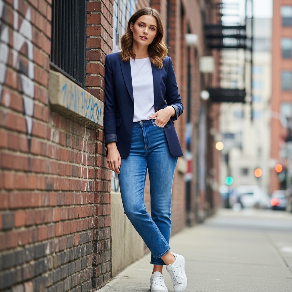 Pairing a casual blazer with classic blue jeans creates an effortless smart-casual outfit. The blazer elevates the denim, making it suitable for informal meetings or social outings. The relaxed structure ensures comfort, while the combination feels timeless. It is a reliable choice for those who want to look polished without trying too hard.
