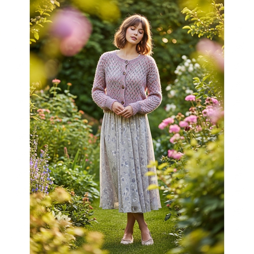 A lightweight cardigan layered over a midi skirt creates a soft and feminine outfit. The cardigan adds warmth, while the skirt keeps the look airy. Ideal for spring mornings or evenings, this outfit feels cozy yet elegant. The layering adds depth without bulk, maintaining a refined silhouette.