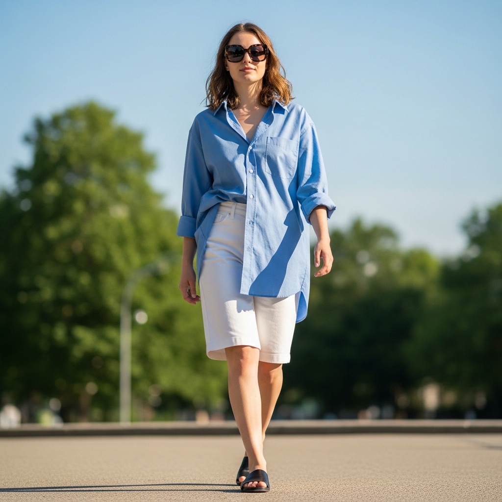 Tailored shorts styled with a structured blazer bring sophistication to warm-weather dressing. This combination works well for semi-formal occasions or creative workspaces. The shorts keep the outfit breathable, while the blazer adds a refined touch. Together, they create a modern silhouette that feels both confident and comfortable.