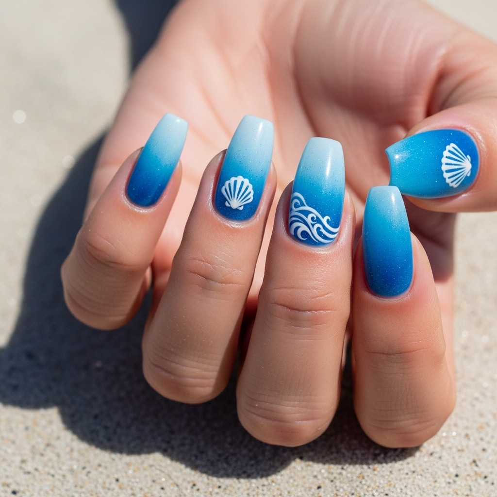 Coastal Blue Ombre Fade Tips