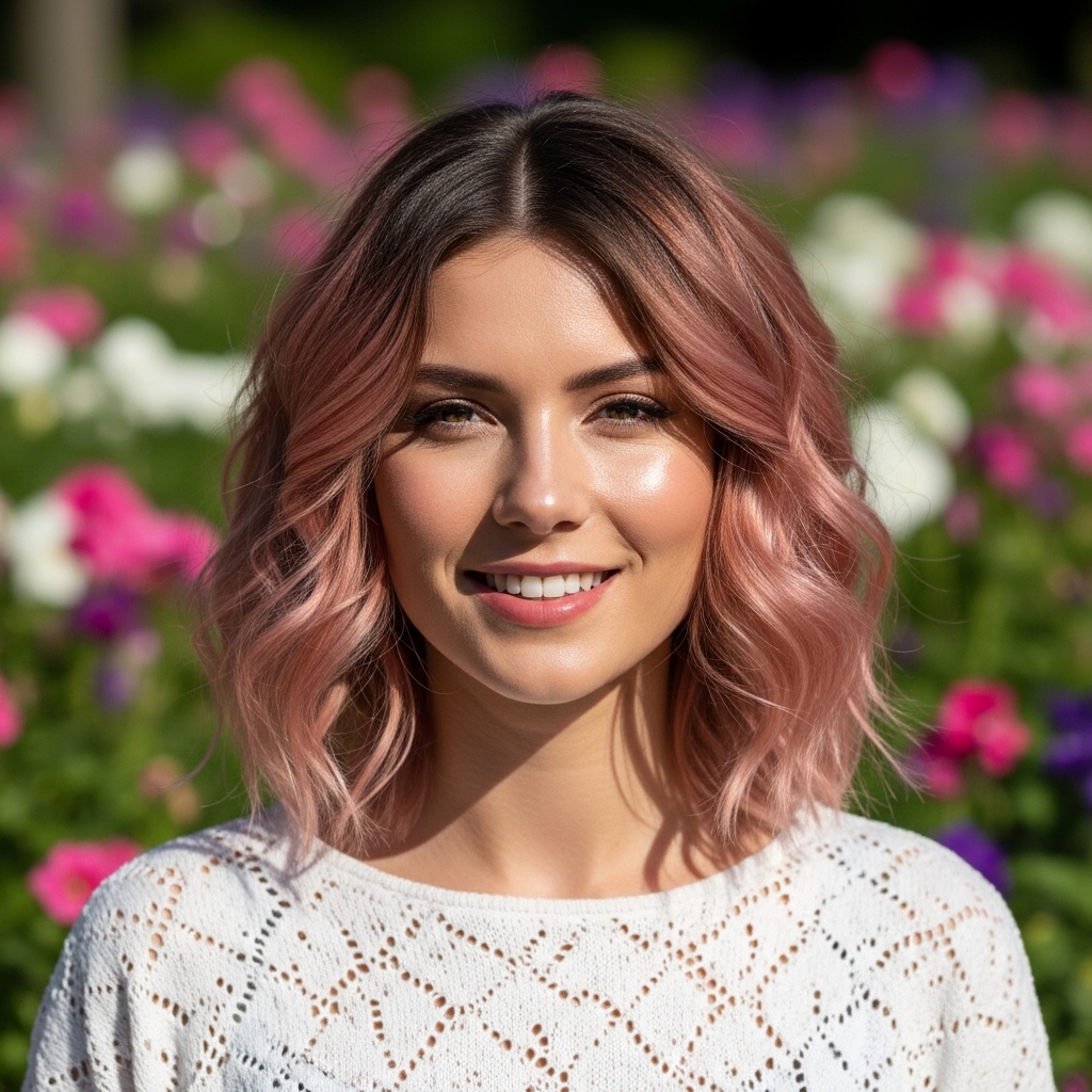 A gentle infusion of rose gold tones over a light brown or blonde base creates a soft, romantic effect. This color feels playful yet sophisticated, making it perfect for spring gatherings and social events. The pastel quality keeps it light and wearable, while the balayage technique ensures a natural fade over time, reducing maintenance needs.