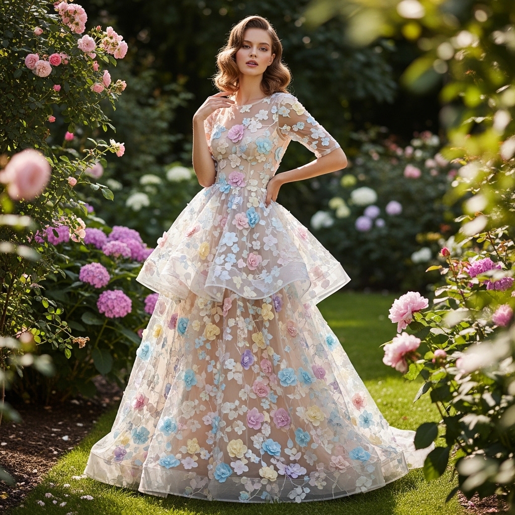 This trend highlights sheer organza dresses layered with floral embroidery. Light and airy, the fabric creates a dreamy silhouette that works beautifully for daytime celebrations. The semi-transparent layers add depth without feeling heavy, making it ideal for garden parties or brunch events. It feels stylish because of its delicate detailing while remaining comfortable due to its breathable structure. The romantic aesthetic aligns perfectly with spring’s soft fashion direction.