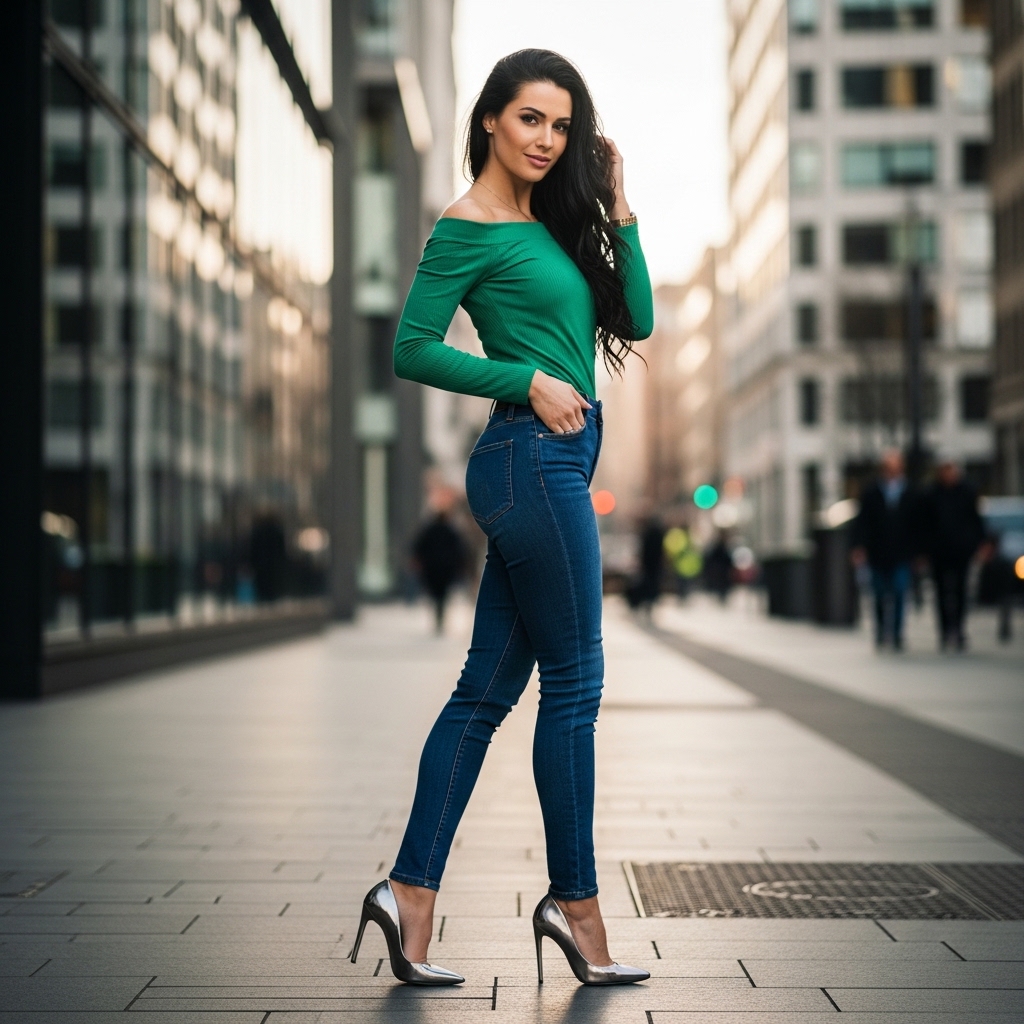 A pair of well-fitted jeans styled with a statement top and heels creates a relaxed yet stylish birthday outfit. This look is perfect for low-key celebrations or casual outings. The combination reflects current trends that favor comfort without compromising style. The structured denim balances the elegance of the heels, making it versatile and easy to wear.