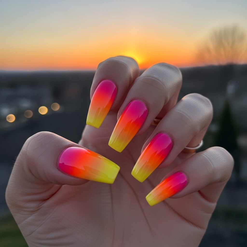 Sunset Gradient Coffin Shape Nails