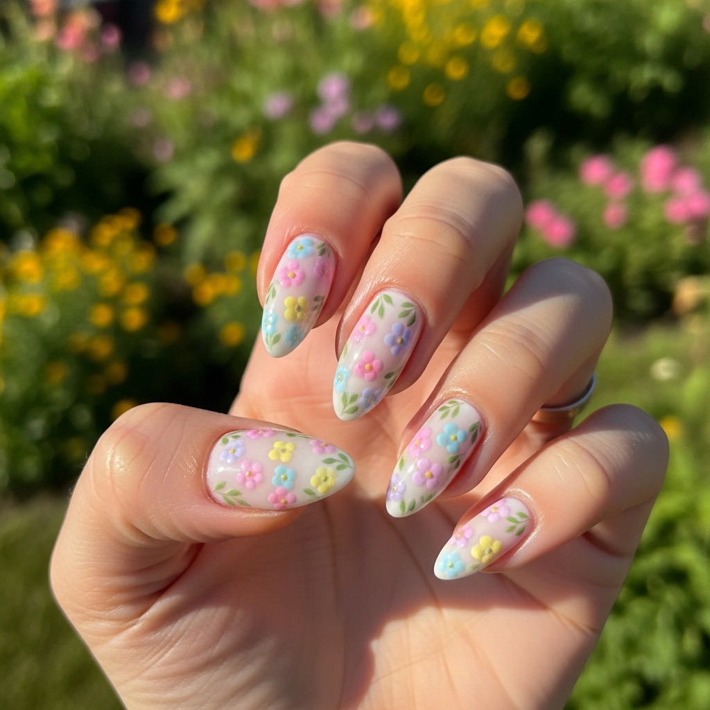 This manicure is ideal for relaxed daytime settings or garden-inspired outings. It balances elegance and playfulness, offering a design that feels detailed yet not overwhelming, making it both stylish and comfortable for extended wear.
